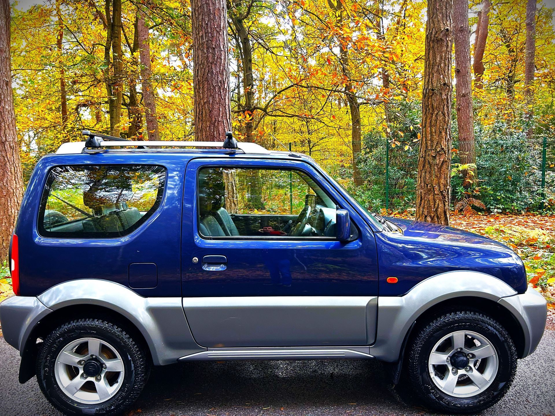Just arrived .. lady owner for first three years then same owner until now+ 89,900 miles from new+ two sets of keys+ service history+12 months MOT+ Power steering+ high and low range 4wd+ 12v charge point+ electric windows+ rear door mounted spare wheel+ Air conditioning*+ Half leather seats+ five spoke Jimny alloy wheels+ roof rails with roof bars+ ABS brakes+ Suzuki radio.cd player+ heated door mirrors+ multiple airbags+ tow pack+ Cats eye blue metallic over titanium grey metallic.