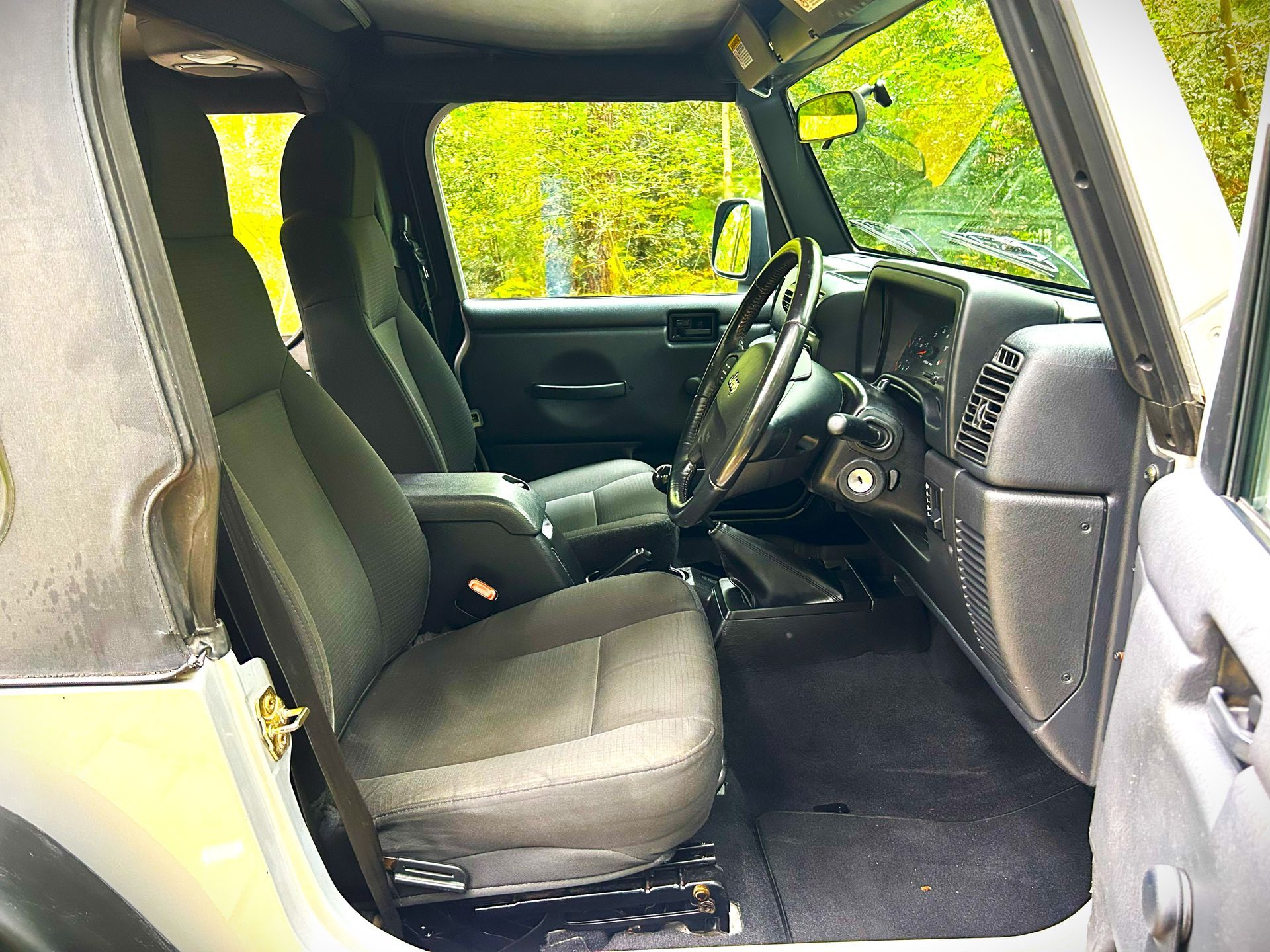 Just arrived ..One of the last Tj`s that were sold in the UK+Low ownership of Jeep plus two owners from new+89.000 miles from new !!service history+ ULEZ COMPLIANT+Nice original standard example that has not been modified+ New roof will be fitted prior to sale+ ABS brakes+ six speed manual gearbox+ cruise control+ power steering+ full size spare wheel+ 4X4 +interior rollbar lights and speakers+ original CD /radio player+ power steering+ Air conditioning*+ side steps+ lockable centre armrest storage bin+ lockable glovebox+ original carpet matts+ multi function steering wheel+ enthusiast owner finished in Bright Silver Metallic Clearcoat Only 47 Jamborees on the road in the uk !