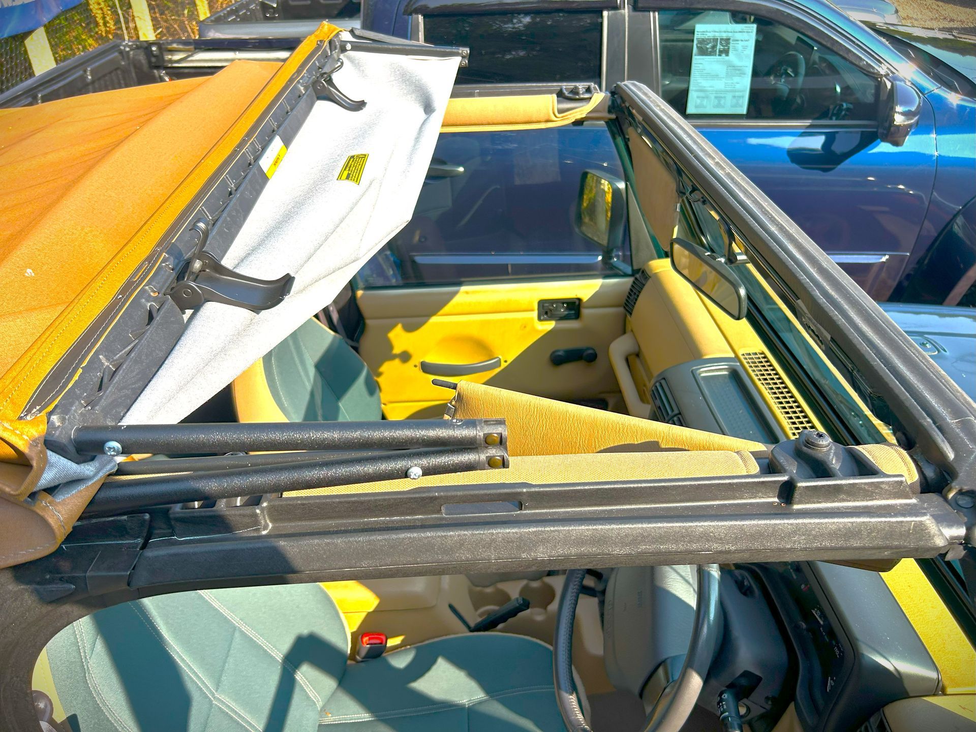 Just arrived ..ULEZ COMPLIANT+ AUTOMATIC+ One Uk Owner from new+ 71,000 miles from new+ Imported from Japan in 2021+ power steering+ full size spare wheel+ 4X4 +interior rollbar lights and speakers+ original CD /radio player+ power steering+ Air conditioning*+ side steps+ lockable centre armrest storage bin+ lockable glovebox+ upgraded Pioneer infotainment system with bluetooth telephone hands free and audio streaming+ Incredibly clean underneath+ sold with 12 months MOT+ Comes with full soft top roof in dark grey. Very nice Wrangler !
